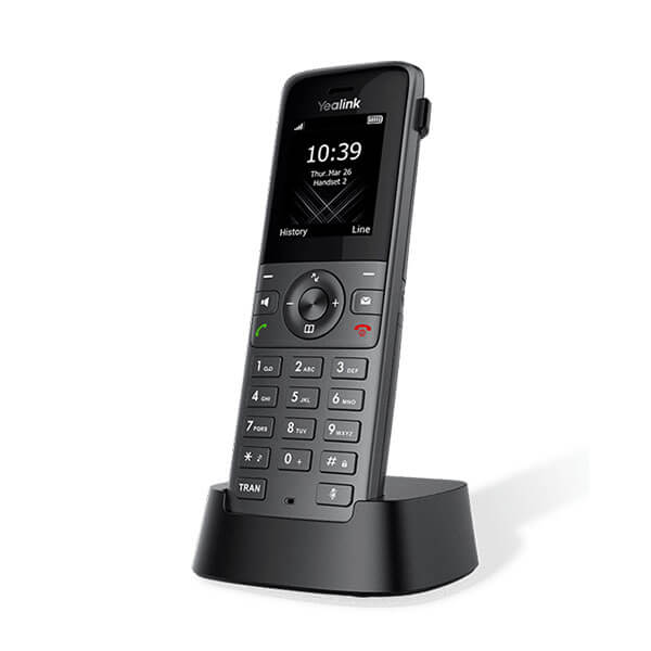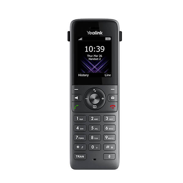 Stylish wireless DECT handset with HD audio, belt clip, and long battery life. Compatible with Yealink W70B/W90 multi-cell systems. Includes 24-month warranty.